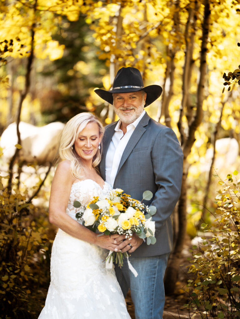 If you’ve ever driven through Big Cottonwood Canyon in late September or early October, you know how magical it is. The canyon bursts into color as the aspen leaves turn brilliant shades of yellow and gold, creating a breathtaking canopy of light. Jennifer and Dan found the perfect patch of trees at Jordan Pines Campground, where soft mountain light filtered through the leaves and the quiet rustle of the wind made their vows feel even more meaningful.
