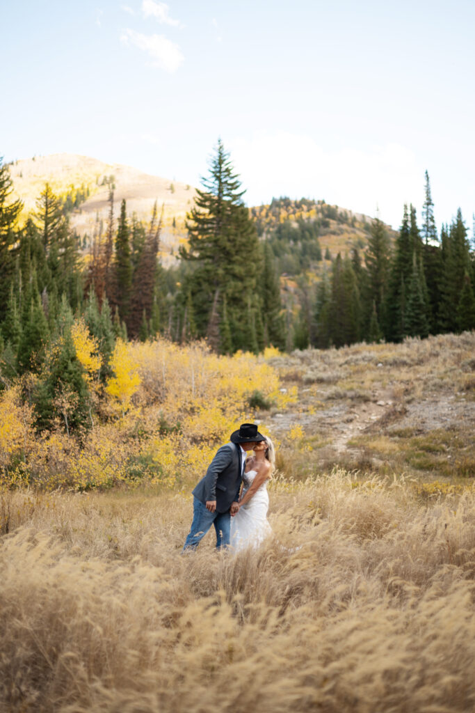 Jordan Pines is one of the most popular photo locations in Utah for a reason — it offers everything from open meadows to pine forests to stunning mountain views. It’s accessible year-round, but fall truly transforms it into something extraordinary. For couples planning an Utah mountain elopement, it’s the ideal blend of adventure and intimacy without having to hike for miles to find a view.