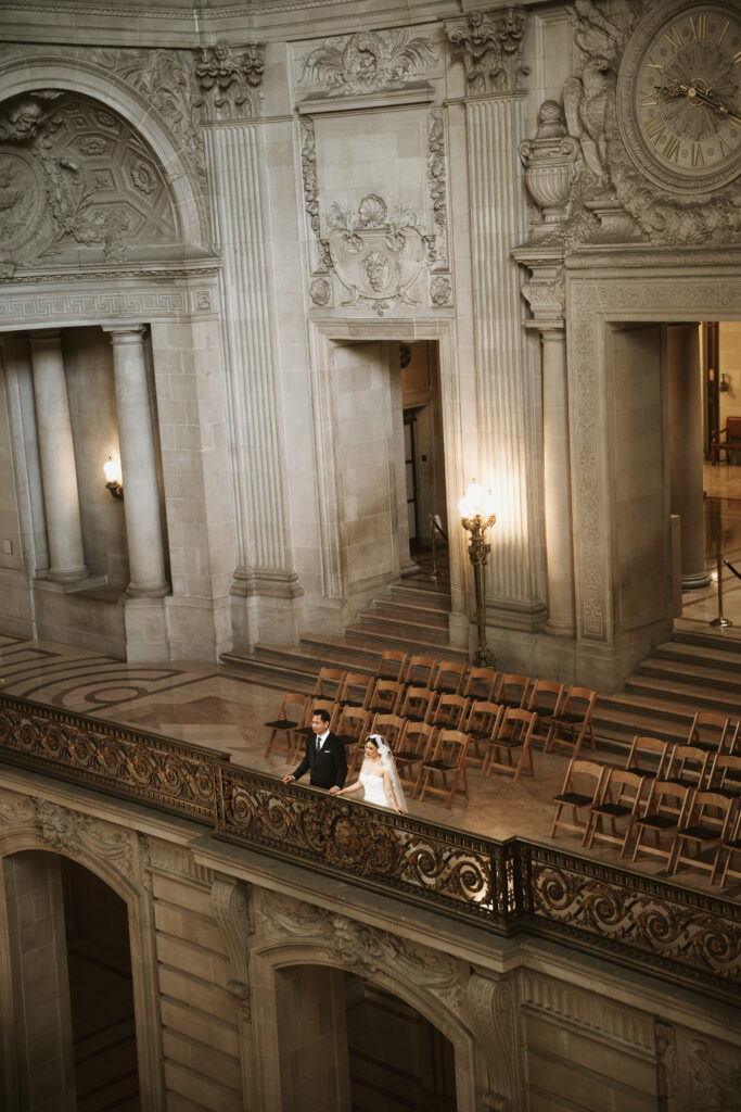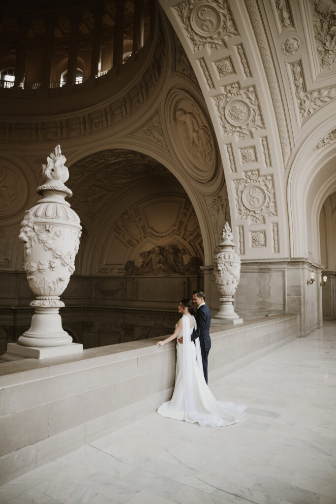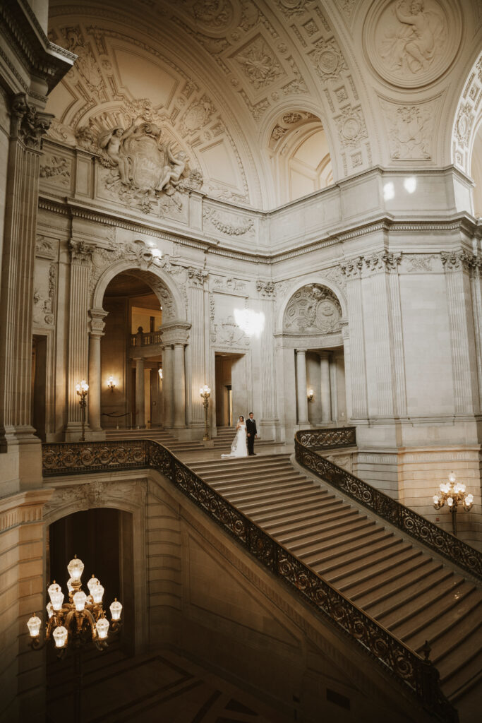 San Francisco City Hall is one of the most elegant engagement photo locations in California. Its grand architecture, marble staircases, and soft natural light offer a refined, editorial look.